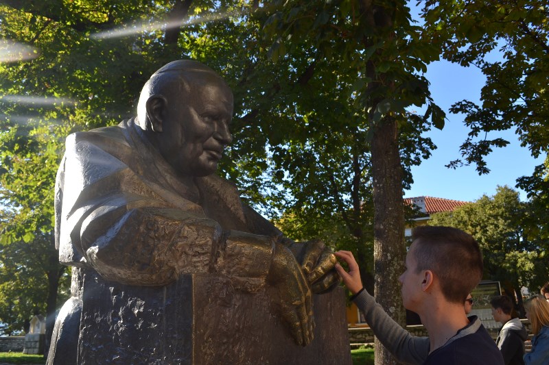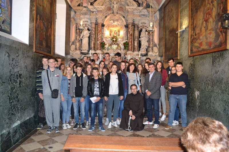Trsat, najstarije marijansko svetište u Hrvatskoj bila je naša posljednja lokacija. Upravo je tamo jednog jutra osvanula Nazaretska kućica, te je nakon 3 godine prenesena na krilima anđela u Loreto kraj Ancone. Mladi nas je franjevački novak upoznao s a značajkama svetišta u kojem smo se zajedno pomolili i zapjevali. U dvorani zavjetnih darova pogledali smo kratki film o povijesti i nastanku svetišta te uspjeli ući u rijetko viđenu riznicu u kojoj nam se najviše dojmila stolica na kojoj je sjedio papa Ivan Pavao II. kada je tijekom njegovog trećeg pohoda Hrvatskoj posjetio i Trsat. Dokaz tome je njegova brončana skulptura koja se nalazi ispred svetišta predstavljena kao „Trsatski hodočasnik“. Ta skulptura prva je skulptura posvećena Papi u svijetu nakon njegove smrti.