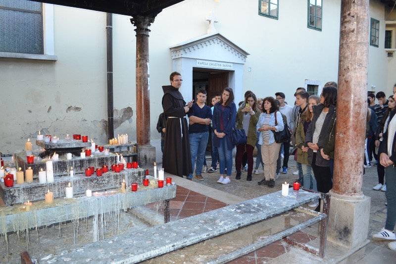 U molitvenom ozračju zajedno s našim razrednicima prof. Mirelom, prof. Marijanom i agencijskom pratnjom prof. Sofijom, krenuli smo autobsom putevima glagoljaša, svećenika, popova (prema latinskom pater omnium pauperum, otac svih siromaha) koji su se u bogoslužju koristili glagoljicom i staroslavenskim jezikom te dali velik doprinos na područjima vjere i kulture u Hrvata od 9. st. pa sve do danas.