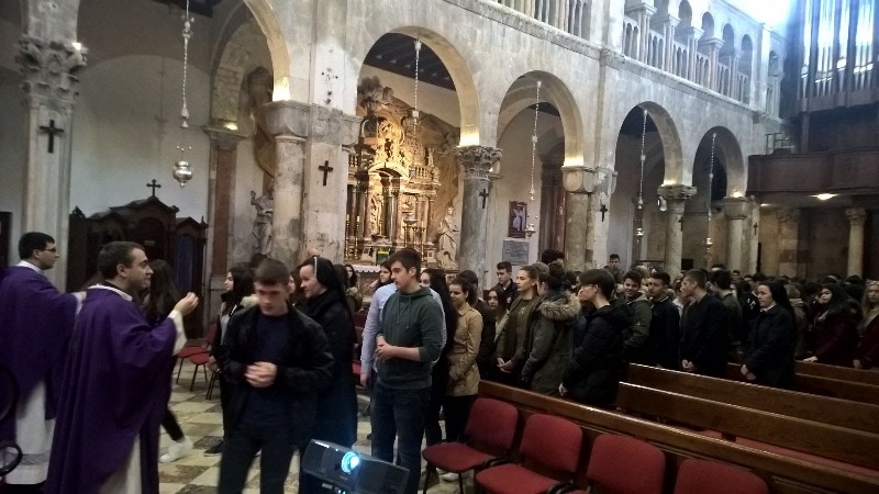Pepelnica nama katolicima označava početak korizmenog vremena, odnosno razdoblje od četrdesetodnevne pripreme za Uskrs. Kao i prethodnih godina pripravu smo započeli sv. Misom. U 8 sati naši su nas razrednici poveli u katedralu sv. Stošije, gdje je za petnaestak minuta započela sv. Misa. Matejevo Evanđelje pozvalo nas je da naša dobra djela: molitvu, milostinju i post obavljamo u skrovitosti, a ne javno – da svi vide: takvi su već primili svoju plaću.