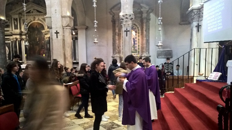 Nakon propovijedi svećenici su posipali pepeo po našim glavama uz riječi: »Spomeni se da si prah i da ćeš se u prah pretvoriti«, te »obrati se i vjeruj Evanđelju.« Te nas riječi potiču na razmišljanje o tome kako nismo ništa doli prah i pepeo, odnosno kako su veličina, uspjeh, materijalna bogatstva, naše tijelo, naš život, kratkotrajni i prolazni. Upravo zbog toga trebamo stavljati naglasak na ono nematerijalno, duhovno, vječno. Nakon obreda i pjesme, svi smo se vratili u učionice, vjerujem, spremni na promjene koje će nam pomoći da uistinu budemo Bogu bliži.