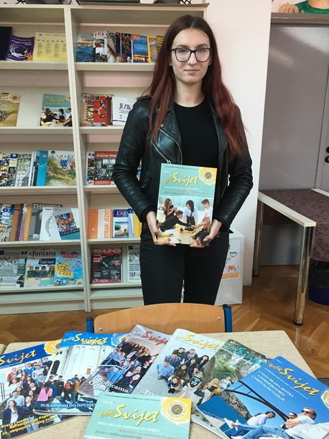 Nismo, dakle, putovali daleko nego samo do naše školske knjižnice, redakciju je predstavljala Natali Pera, učenica 3.a razreda i voditelj novinarsko-literarne sekcije profesor Damir Sikirić, a kratko su nam se pridružili i ravnatelj don Ante Sorić te pedagoginja s. Ana Lipovac. Smotra za školske listove počela je u 10 sati i trajala nekih dva i pol sata te je prvi put u istom programu predstavljeno 17 listova osnovnih škola i 10 listova srednjih škola, a među svima njima našla su se i četiri digitalna školska lista.