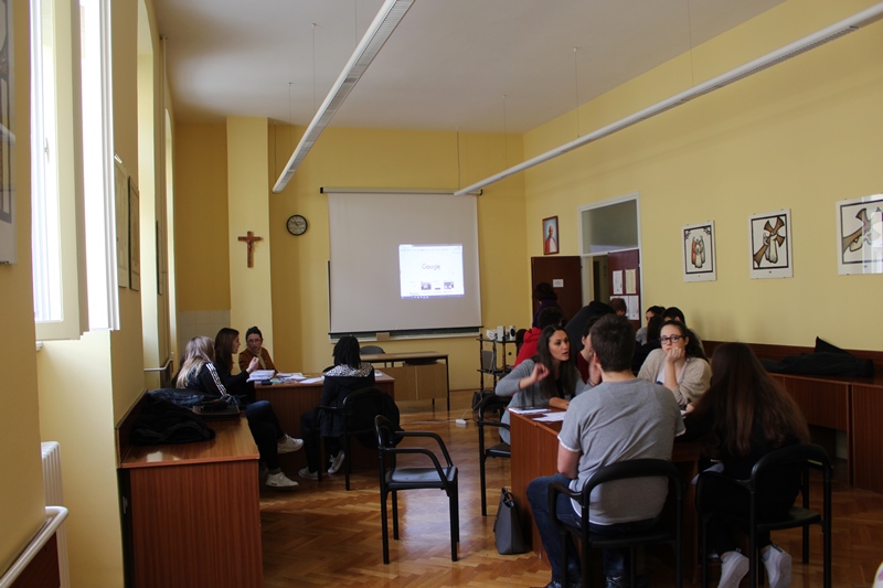 Ljubazno su nas dočekali suradnici i predavači tečaja. Prvo predavanje održao je don Igor Ikić na temu „Upoznaj samog sebe“.Svima nam je uputio važno pitanje „Voliš li ti sebe?“.Pitanje je to koje tako rijetko postavljamo samima sebi. Potaknulo nas je da zastanemo na trenutak i promislimo. Zaokupljeni problemima zaboravljamo da trebamo voljeti sebe da bismo mogli voljeti i druge. Tijekom rada u radionicama po grupama čuli smo različita mišljenja te se tako bolje međusobno upoznali. Pričom o „Izgubljenom sinu“ prisjetili smo se da nas Bog uvijek čeka raširenih ruku. S tom mišlju završili smo prvi susret. Bio je to za nas naporan dan te su svi željno iščekivali večeru.Odlučili smo se podijeliti u grupice i pomoći u pospremanju stola.Imali smo ponešto slobodnog vremena za druženje i igranje društvenih igara. Oni vrjedniji sa sobom su ponijeli i knjige za učenje dok su ostali igrali stolni nogomet i pikado.Tu se otkrilo i mnogo talenata.
