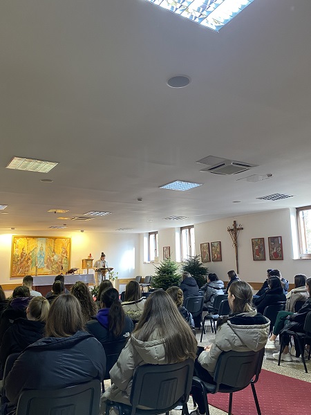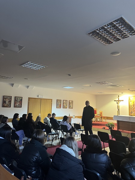 Dva smo dana bili smješteni u Pastoralnom centru Mukinje, na ulazu u Centar dočekao nas je voditelj, koji nas je nedugo nakon toga podijelio u sobe. Otišli smo se raspakirati i malo odmoriti do ručka koji je bio vrlo ukusan. Lijepo je bilo iskusiti sve te pogodnosti i uživati u zajedničkim trenucima. Poslije ručka prisustvovali smo dvama predavanjima don Ivana Šibalića kojeg smo unatoč umoru svi pozorno slušali i pratili. Tema prvog predavanja bila je Sedam glavnih grijeha u sklopu koje nam je don Ivan na jednostavan i slikovit način približio grijehe kojima smo svi podložni po ljudskoj naravi. Uz sve to dao je zanimljivu usporedbu gdje nas je usporedio s poljem: sedam glavnih grijeha nazvao je korijenskim i dodao da se u svakom od nas nalaze ti korijeni koji izazivaju sve ostale grijehe.