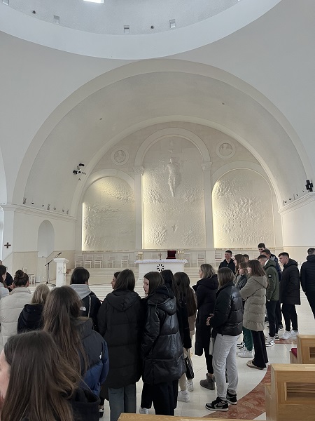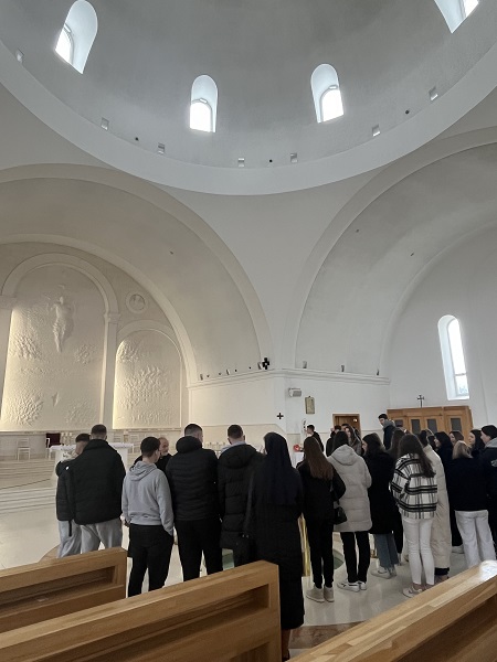 Duhovna obnova nas, trećaša započela je u petak, 9. veljače rano ujutro kada smo se okupili na dogovorenom mjestu kako bismo u osam sati krenuli prema svojem prvom odredištu – Udbini. Kao i uvijek svoj put započeli smo molitvom upućenom Ivanu Pavlu II. da nas čuva na putu i zagovara za nas na ovoj duhovnoj obnovi.