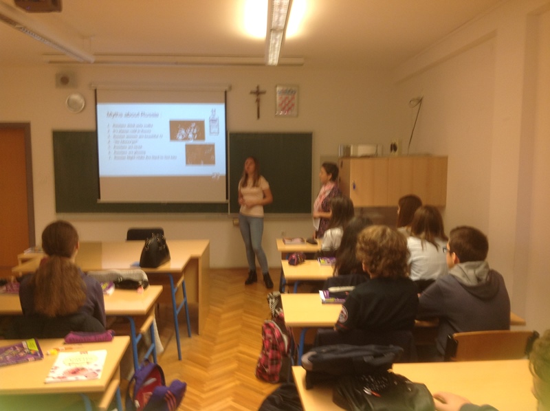 U ponedjeljak  14. studenoga učenici 3. razreda naše škole zajedno s profesoricom Vanjom Bajlo uobičajeni sat engleskog jezika zamjenili su slušanjem izlaganja studentica Darie Martine, Natalie Loting i Chloe Tate iz Rusije i SAD-a. Brojnim prikazima zanimljivih prezentacija, otkrile su djelić svog života predstavljujući zemlje i običaje iz kojih dolaze.