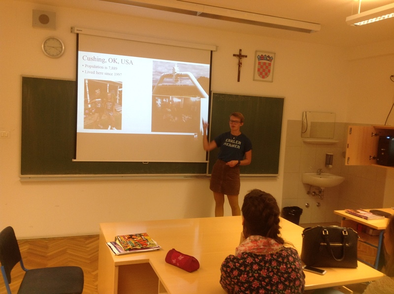 Sljedeća na redu bila je studentica iz Oklahome u SAD-u. Ona je svoje izlaganje započela s prošlošću svoje države i starom indijanskom civilizacijom. Naime, nakon otkrivanja Sjeverne Amerike, kolonizatori su protjerali Indijance na područje tada nenaseljene Oklahome. Zbog svog geografskog položaja, razvijala se sporo, no danas je svijetu od iznimne važnosti.