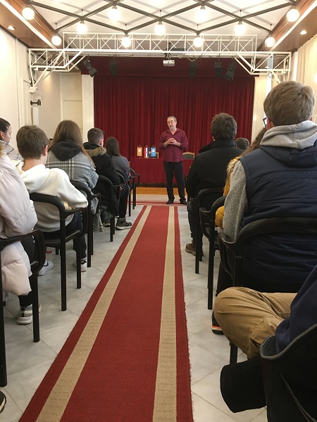 Nerma Kreso i Darko Kavain, bračni par akademskih glumaca te ujedno začetnici i članovi Kazališnog studija, posjetili su nas u četvrtak, 26. siječnja 2023. i vratili oko dvije i pol tisuće godina unatrag predstavljajući nam grčku tragediju. Predavanje se, uz glumljene prizore i nastupe naših učenika, odvijalo u Nadbiskupskom sjemeništu »Zmajević«. U dvosatnom zanimljivom programu naši su nas voditelji uveli u svijet grčke mitologije, legendi i nesretnog rata zbog vlasti u gradu Tebi.