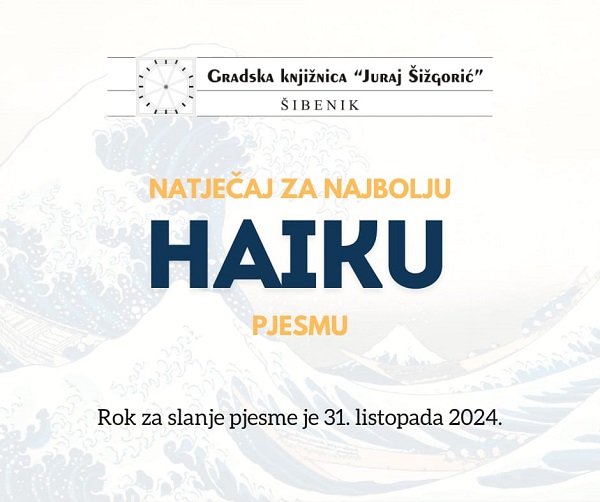 Gradska knjižnica ,,Juraj Šižgorić” Šibenik, šestu godinu zaredom, u sklopu obilježavanja manifestacije Mjesec hrvatske knjige, raspisala je natječaj za najbolju haiku pjesmu. Ovogodišnja tema je bajka, a forma može biti tradicionalna (5 – 7 – 5) ili moderna. Na natječaj su pristigla 242 rada u 4 kategorije, osnovna škola – razredna nastava, osnovna škola – predmetna nastava, srednja škola i odrasli.