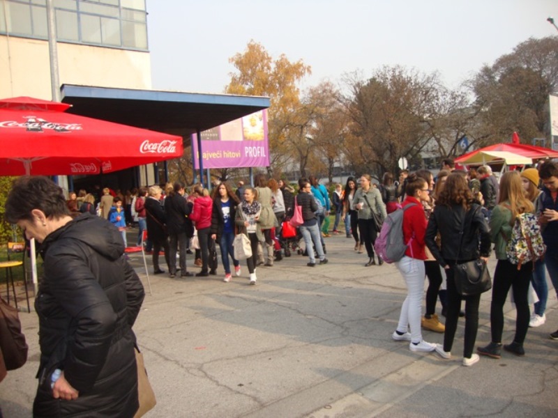 Zašavši u 5. paviljon zajedno s Martom, Petrom i Magdalenom (sve moj 3.a), automatski smo se osjetile ugroženima koliko je raznovrsnih skupina ljudi bilo. Od osnovnoškolaca, studenta pa sve do umirovljenika – taj jedan paviljon je bio dupke pun (doslovno). Negdje u međuvremenu, nas četiri smo postale nas dvije. Marta je ostala uz mene cijelo vrijeme makar se držale za ruke. Najviše nas je zainteresirao ‘šareni dućan’ sa svojom odista šarenom ponudom od knjiga otprije stoljeće, videokazeta po 1 kn na njemačkom, gramofonskih ploča iznimno poznatih izvođača do najnovijih knjiga. Unutar te ponude našla sam ono po što sam i došla. Za detalje, kontaktirajte … pa … mene! Nakon skoro dva sata unutar jednog paviljona, dobile smo poziv da bismo se mogle prošetati i do drugog. Zamislite iznenađenje na našim licima kad su nas na to podsjetili.