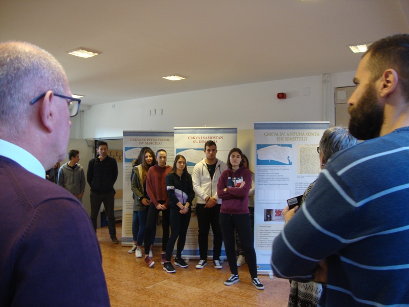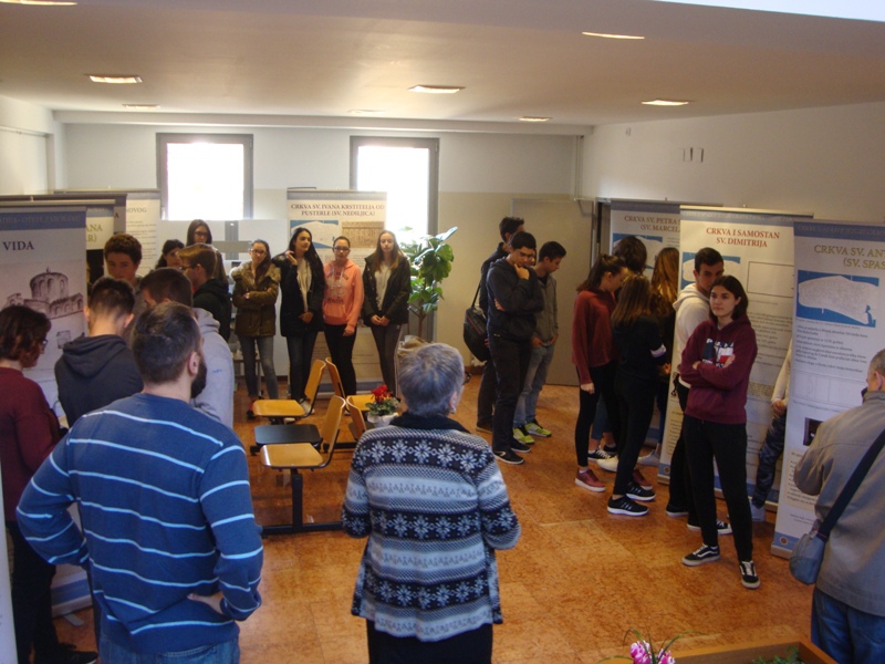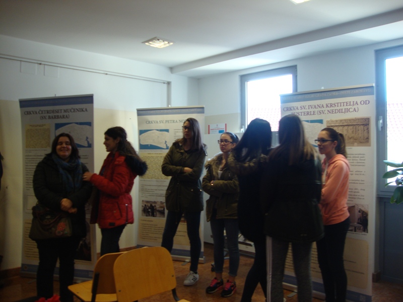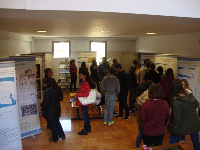 Tako je postojeća izložba postavljena 22. studenoga u školi, a svi zainteresirani moći će je razgledati do ponedjeljak 27. studenoga 2017. Sastoji od osam (8) samostojećih plakata na kojima su prikazani lokaliteti osam (8) crkava koje su se nalazile na području zadarskog Poluotoka, a kojima se izgubio ili se gubi svaki trag, njihovi tlocrti, kratak zapis o svecu kojemu je crkva posvećena i sl. Prati je i Katalog u kojemu između ostaloga stoji: