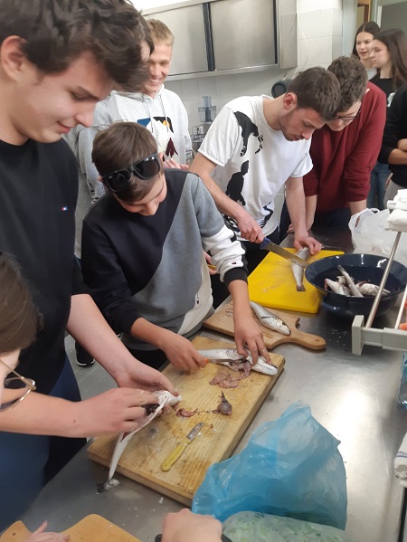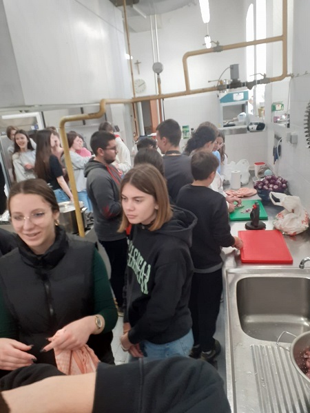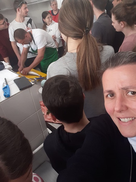 Nakon samog predavanja zaputili smo se u kuhinju gdje su danas na jelovniku bila pržena jaja s povrćem. Radili smo u malim skupinama te smo se izmjenjivali u poslovima. Jedni su rezali povrće, dok su drugi pržili jaja. Na taj način svatko od nas mogao je naučiti i vidjeti sve postupke priprave jela. Svi smo se zbližili i povezali dok smo pravili jelo, što je jedna od ljepota kulinarskog tečaja. Na kraju je došlo i do samog kušanja jela. Jelu smo, naravno, dali čistu desetku!