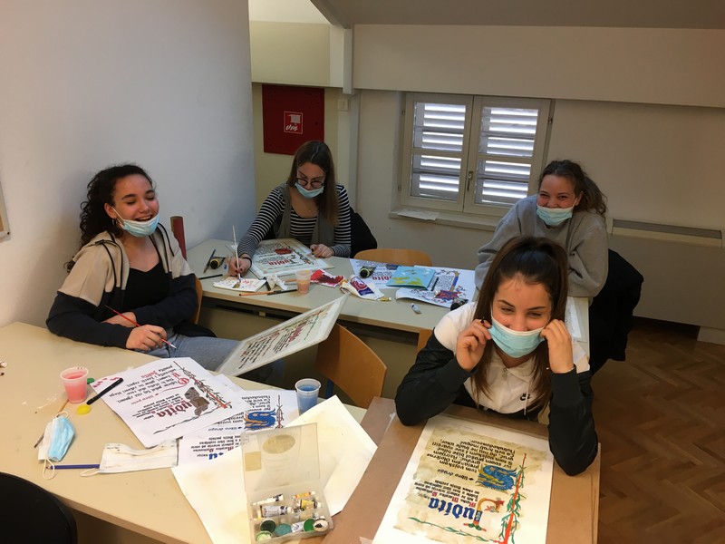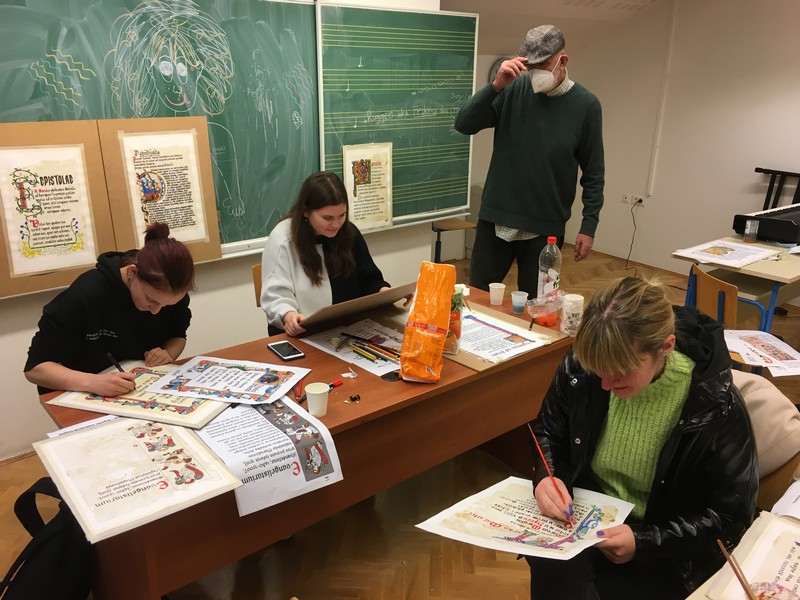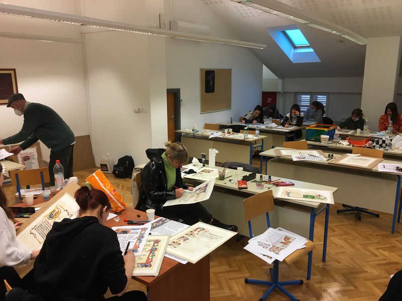 U radionici Likovne umjetnosti slijedili su tragove Marulića slikara, rukom su ispisivali i iluminirali odlomke Marulićevih tekstova, ponajviše Judite, Davidijade i Molitve suprotive Turkom