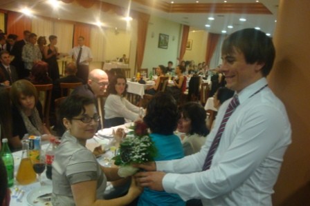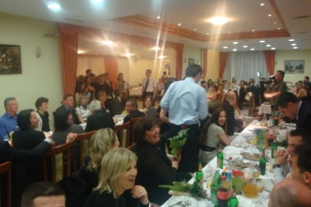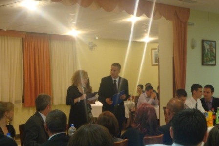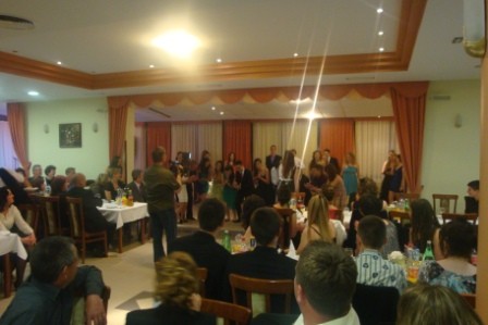 Malo bi se dotakla vremenskog slijeda, gostiju, govora, benda i tombole, ali zahvale su zahvale. Na prvom mjestu! Stoga, bit ću kratka. Zahvaljujem se u ime svih svojih kolega – maturanata roditeljima koji su ”keširali” novce za srećke ( i još puno toga), jer u doba recesije jedva imaš za kruh (ta, to slušam doma xy puta). Zahvala i našem prof. Mati Ljubičiću na darovanoj slici (fenomenalna je), koja je poslužila kao mamac za kupovanje srećki, ali i kao glavna nagrada. Lukavo – znam, ali i tako se nekad mora! Tako je tombola, premda smo mislili da će biti najdosadniji dio večeri, ispala vrlo zabavno iskustvo. Katarza … ma šala…. čitaš brojeve i nosiš ljudima poklone… Posao za žene na visokim petama. Baš?!