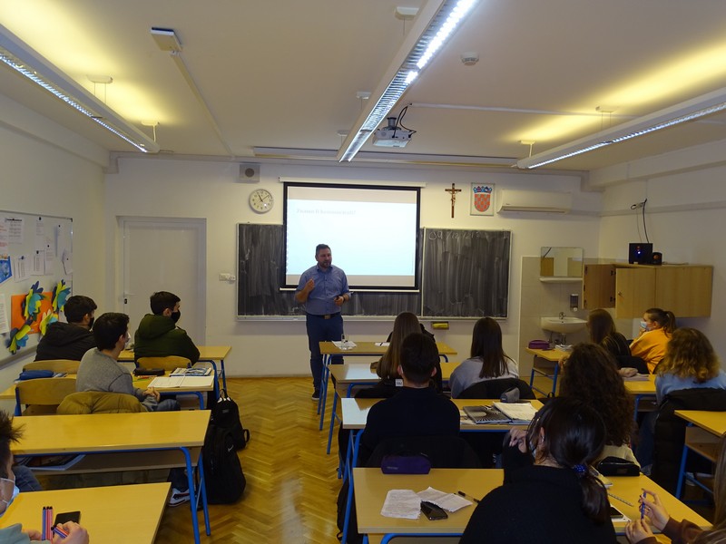 U sklopu školskog projekta Civilizacija ljubavi 9. i 10. prosinca održana su predavanja i radionice za učenike od 1. do 3. razreda na temu Komunikacija i nasilje na društvenim mrežama. Gost predavač bio je komunikolog Kristijan Sedak, mag. comm., prof. Hrvatskog katoličkog sveučilišta u Zagrebu.