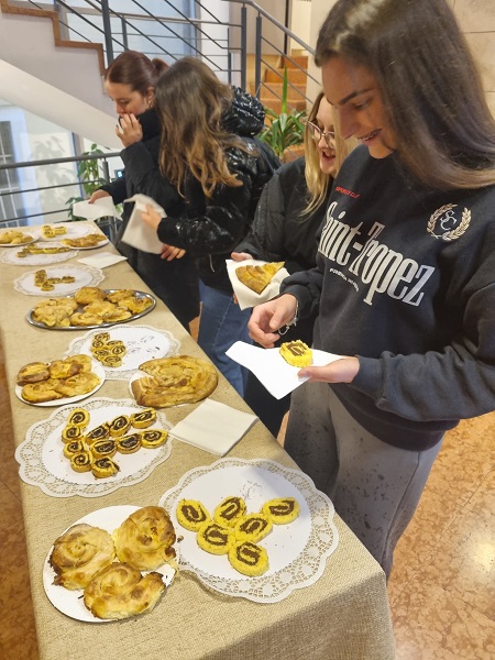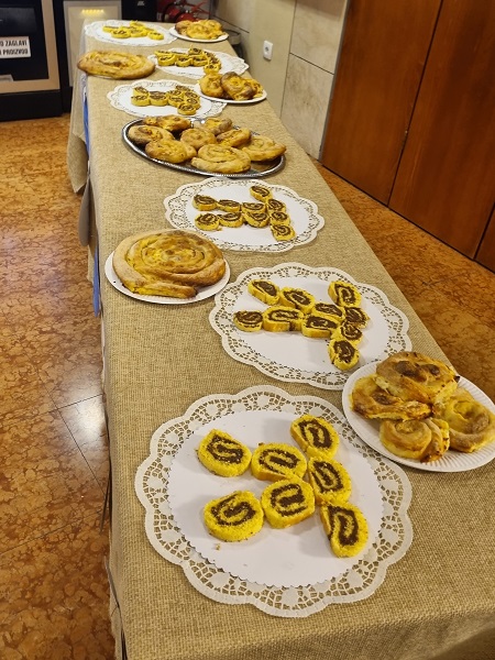 U petak ujutro prije nastave servirali smo na stolove u predvorju škole tople pite i rolade te ih ponudili učenicima i profesorima. Nadamo se da smo ovim projektom bar malo razveselili i educirali naše učenike.