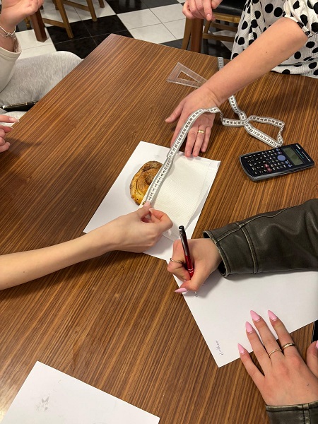 Bez obzira što smo bili zaneseni kulinarskim umijećem, nismo zaboravili na malo matematike i naš broj koji se krije u opsegu i površini kruga. Kako bismo uočili vezu broja π s omjerom opsega i promjera kružnice, izmjerili smo opsege i promjere naših pita i kolača.