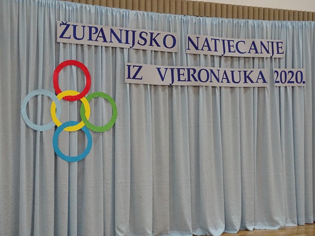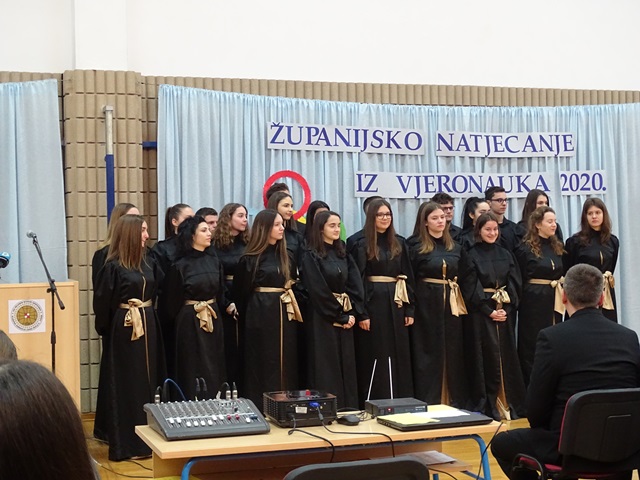Zbor, na čelu s profesorom Grgom Ivkovićem, izveo je pjesmu Otvorite vrata Kristu. Pred sam kraj, predstojnik katehetskoga povjerenstva, don Gašpar Dodić održao je govor u kojem je pozdravio i pohvalio sve sudionike i njihove mentore za sav uložen trud. S osmijehom na licu i ponosom u glasu izjavio je kako je zadivljen oraspoloženošću i upornošću naših mladih, koji na taj način stvaraju otvoren prostor u kojem se može osjetiti Božja dobrota i ljubav, također time svima šalju poruku: »Vjera u ljubav, rađa ljubav!« Zaželjevši svima sreću, naglasio je da su svi sudionici, bez obzira na krajnji rezultat, već pobjednici. Tim govorom Vjeronaučna olimpijada 2020. bila je službeno otvorena.