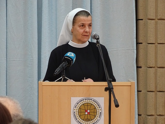 Sveti Vinko Paulski u svom je životu osnivao mnoge organizacije koje pomažu potrebitima, a najpoznatija je od njih ženski katolički crkveni red Sestara milosrdnica, a mi smo imali priliku čuti svjedočanstvo jedne od njih – sestre Mirjane. Slušajući njen govor, u njenome se glasu mogla čuti ljubav i zahvalnost prema sv. Vinku koji je, kako ona kaže, »postao njezin bliski svetac koji ju vodi iz dana u dan«. S četrnaest godina otišla je u samostan Sestara milosrdnica, kao i njena starija sestra. S. Mirjana ima pet sestara, a uz nju još su se čak dvije zaredile kod Sestara milosrdnica. Priznala je da pri dolasku u samostan nije znala tko je to sv. Vinko, ali je s vremenom počela učiti o tome velikom svetcu. Prije nego li je iz svog rodnog Otoka otišla u Zagreb, s. Mirjana imala je neobičan san u kojem joj je Bog prikazao njezinu budućnost. Sanjala je sebe i još pet djevojaka, koje su se zajedno s njom trebale zarediti, kako se igraju. U jednome trenu nešto ih je prepalo i kako bi pobjegle, morale su preskočiti jedan zid. Našavši se potpuno sama na drugoj strani, shvatila je da je obučena u bijelu vjenčanicu zbog čega su svi pomislili da će ona prva odustati. Sumnje ostalih nisu se ostvarile, naprotiv, s. Mirjana je jedina od djevojaka iz svoje generacije koja se zaredila. Od tada je radila kao medicinska sestra u staračkom domu, s izbjeglicama za vrijeme Domovinskog rata, a danas svojim radom doprinosi zajednici u Kistanjama. Svoj govor završila je kratkom molitvom sv. Vinku da nam pomogne osloboditi se sebičnosti kako bismo mogli obavljati njegov poziv prema svakome koga susretnemo.
