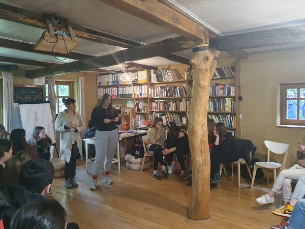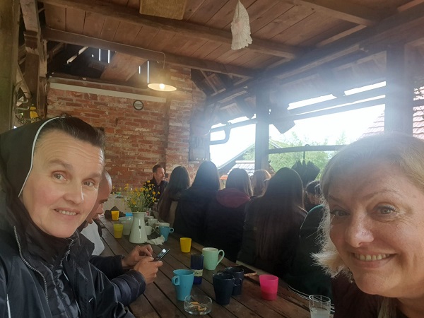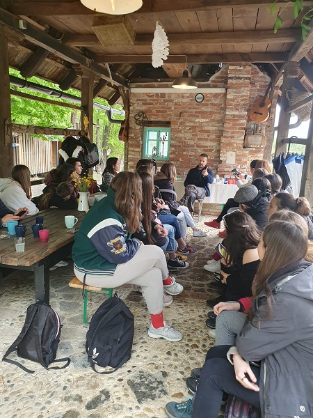 Drugu aktivnost vodio je Matko koji je po struci povjesničar. Podrijetlom je iz Skradina, a u želji za mirnijim životom došao je tu i osnovao svoju obitelj. Govorio nam je o osnutku imanja 1999. i zašto nazivaju svoje imanje recikliranim. Saznali smo od čega su gradili kuće; od bala sijena, gline i drugih materijala. Na krovovima npr. umjesto crjepova imaju nisko raslinje, a prednosti toga su smanjenje sobne temperature i pročišćeni zrak. U njegovoj pratnji razgledali smo ostatak imanja. Nakon aktivnosti i slobodnog vremena dobili smo topli ručak i domaći desert.