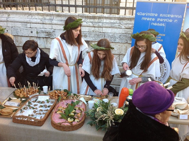Mrzlog jutra, točnije 29. studenog 2016. gradom ste mogli uočiti, nas, užurbane klasičare kako zdušno prolazimo „ našom lipom Kalelargom“ s osmjehom na licu, a nedugo zatim osjetiti mirise začinskog bilja te uočiti raznovrsna antička jela.