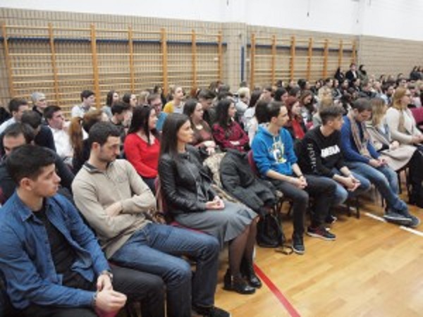 U srijedu, 28. prosinca, zaživjela je jedna posebna večer. Božićna čarolija i dalje je bila prisutna u našim mislima, srcima, osjećajima, a božićni duh i dalje je veseo hodao gradskim ulicama i tiho se šuljao u domove donoseći istinsku radost Isusova dolaska. Božanska toplina ispunila je dvoranu naše gimnazije u koju su nesvakidašnji učenici neprestano pristizali i do 18.00, kada je program i započeo, zauzeli sva mjesta i više od toga.