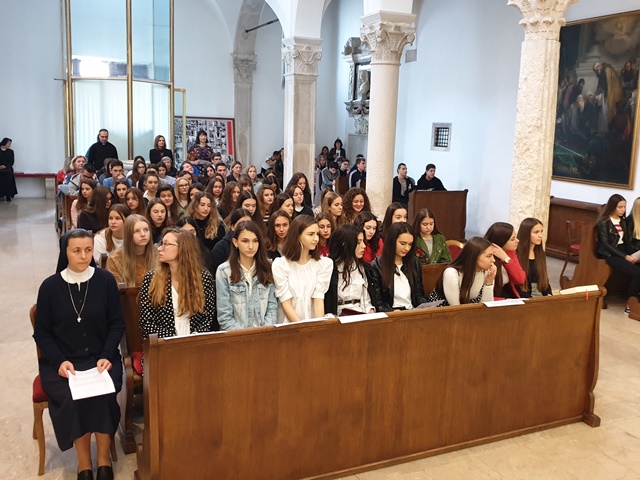 Ove školske godine program je započeo klanjanjem pred Presvetim u crkvi sv. Marije gdje su nas dočekale sestre benediktinke i zajedno s nama molile i pjevale. Osim meditacija i pjesama vjetar u leđa dalo nam je čitanje iz evanđelja o Isusovom hodu po vodi.