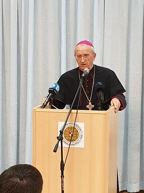 Čestitao nam je Dan škole i prisjetio se misli i djela Ivana Pavla II., načina kako je „šokirao“ svoje suvremenike kao i njegovih posjeta Hrvatskoj. „Zahvalni smo što nas je posjećivao, ali i što se zauzimao za nas. „Pitanje je kakva bi hrvatska povijest bila da nije bilo njega“ rekao je Nadbiskup. „Najljepši dio je taj što je ljubav bila obostrana. Hrvati su voljeli Papu i On je volio nas. Kad nam je bilo najpotrebnije bio je uz nas i bio nam primjer i utočiste vjere“. Ponukan školskom reformom koja je nezaobilazna tema, naglasio je i podsjetio nas je da reforma treba biti u službi učenika i da su oni uvijek na prvom mjestu.