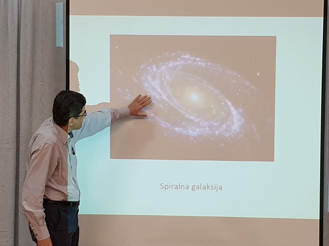 Osvježenje programa dao je duet Lucije Vidić učenice 1. a i Ivana Grganovića učenika 3. a s pjesmom “Beneath you beautiful”, autora Timoty Mckenziea, Adele Sandea i Mike Posnera. Pokazali su nam kako u školi postoje talenti koji su vrijedni pozornosti. Nakon pjesme, zvijezda ovogodišnjem programa, bio je prof. Dalibor Šimunić sa svojim zanimljivim predavanjem o komzologiji. Između ostalog objasnio nam je da Teorija Velikog praska ne objašnjava postanak svemira, nego njegovo širenje i da se svemir ne širi nego da stvara.