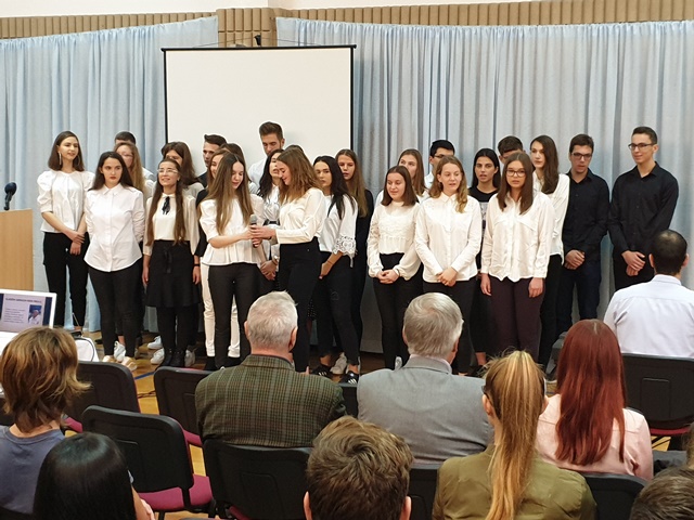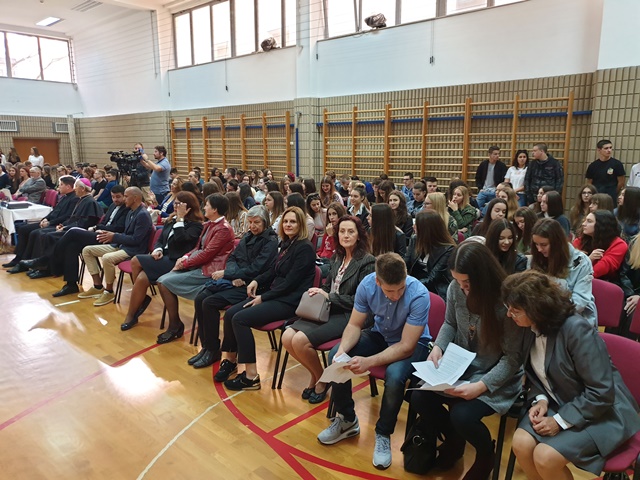 I učenici–voditelji izrekli su nekoliko riječi o školi. Spomenuli su uspjehe na raznim natjecanjima, dobre odnose s profesorima, nezaobilazno na velik broj sati, ali i na tople osmijehe koji ih uvijek dočekaju u knjižnici i uredu školske psihologinje.