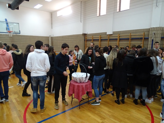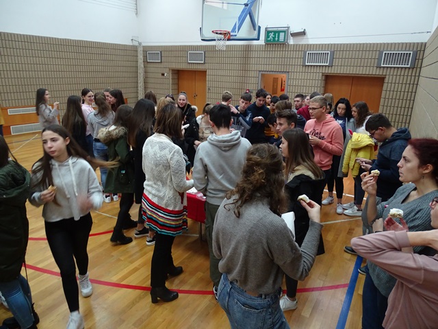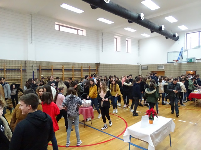 Uoči blagdana sv. Nikole, u četvrtak, 5.12., u Klasičnoj gimnaziji Ivana Pavla II., nastavili smo s dugogodišnjom tradicijom humanitarnog darivanja pod krilaticom »(Do)živi ljubav!« Naime, nakon zvona, koje je označilo kraj 3.sata, uputili smo se u sportsku dvoranu koja nas je dočekala puna mirisa i, malo kasnije, okusa mnoštva kolača. Za razliku od proteklih godina kada su učenici donosili kolače, ovaj su se put iskazali profesori – i to u punom svjetlu. Bilo ih je mnogo i bili su ukusni, mislim na kolače, naravno!