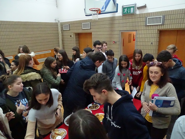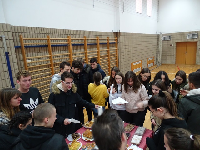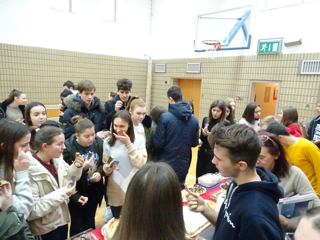 U veseloj i ugodnoj atmosferi tijekom velikog odmora, čijih je dvadesetak minuta proteklo u tren oka, uživali smo u finim kolačima koje su radili profesori te smo tako pridonijeli simboličnom novčanom naknadom za školski fond »Gorušičino zrno« iz kojeg se stipendiraju bivši klasičari – sadašnji studenti, ali i učenici kojima je sada potreba pomoć, primjerice nabavkom udžbeničkih kompleta i slično. Prema mome mišljenju iznos novca koji je tko dao nije bitan, već bitna je nakana koja je bila pomoći drugima. Ugođaj je bio opušten i radostan, ali, kao što sam već napisala, veliki je odmor trajao prekratko… još bar dvadeset minuta bilo bi taman. Nadam se stoga da će mjerodavni uzeti ovo u obzir sljedeće godine i dati sv. Nikoli više vremena. Za kraj istaknimo kako je ovo bila dobra prilika da se svi učenici i profesori nađu na jednom mjestu zajedno, da se međusobno družimo i bolje upoznamo.