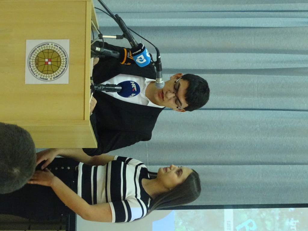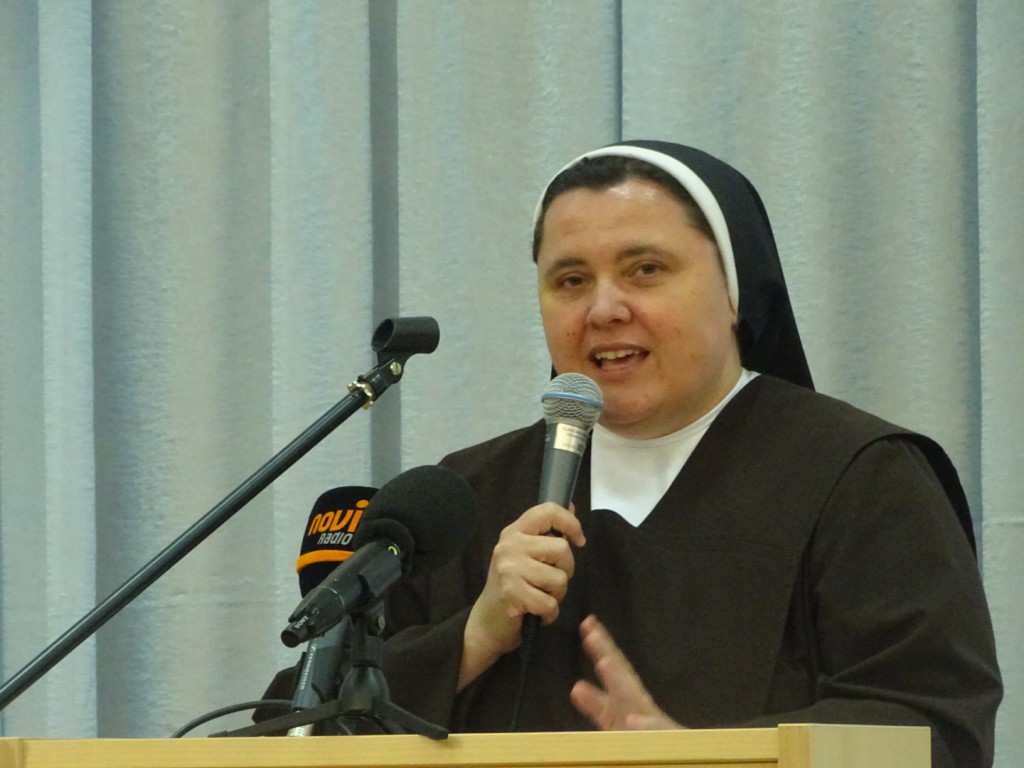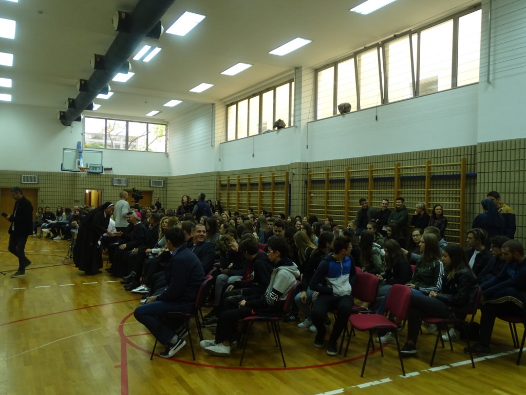 Prigodom proslave Dana Škole pozvali smo s. Dijanu Mlinarić, karmalićanku Božanskog Srca Isusova. S. Dijana stigla je iz Bosne i Hercegovine iz samostana u Gabela Polju. U svojoj provinciji, zadužena je za pastoral mladih i promociju duhovnih zvanja. Za Zadarsku nadbiskupiju vežu je dvije prve godine službe nakon zavjeta koje je provela u kući karmelskih sestara u Bibinjama. Na temelju svoga hoda s Bogom progovorila je o temi “Mladi i molitva”. Na početku svoga izlaganja predstavila nam je svoje “jokere” papu Ivana Pavla II. i svetu Tereziju Avilsku. Prikazala nam je kratki film o Papi. Svoje predavanje temeljila je na životu svetca zaštitnika i na temelju svoga iskustva, istaknuvši kako je i ona naših godina tražila Boga, kako je često postavljala pitanja “Zašto”? Progovorila je o osobnoj izgradnji odnosa s Bogom te kako pred Boga trebamo doći upravo onakvi kakvi jesmo. Ne smijemo stvarati lažne slike o sebi jer nas On poznaje bolje od nas samih. Bogu se trebamo obraćati jednostavnim riječima, Njemu se trebamo izjadati, pohvaliti, povjeravati se njegovoj ljubavi. Sestra Dijana od ranjenog Božjeg Srca nam je na vrlo bliz i upečatljiv način približila temu molitve.