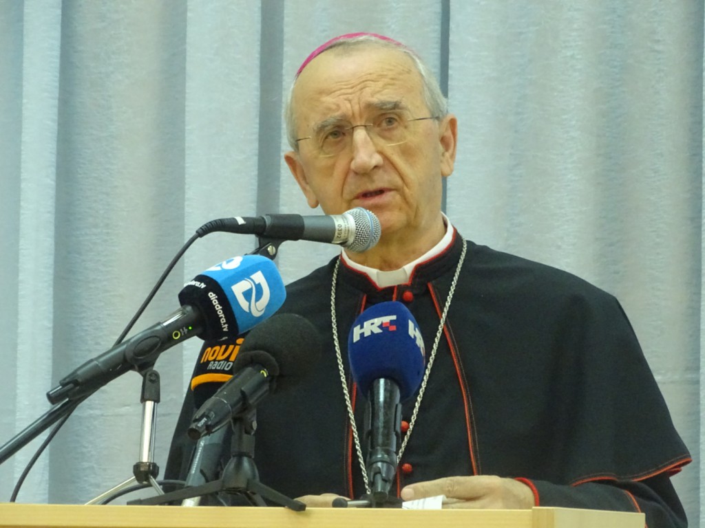 Svoju pastirsku riječ uputio je i o. nadbiskup Želimir Puljić. Pohvalio je duh zajedništva u Školi, njegovan po primjeru sv. Ivana Pavla II. “Zahvalan, odgovoran i ponizan izvršio je na najbolji način svoju službu i zaslužio da ga slavimo kao svetca i zagovornika u kojega se možemo ugledati i od njega tražiti pomoć. Kad je 22. listopada prije četrdeset godina služio svoju prvu pontifikalnu misu, pozvao je sve širom svijeta ‘Otvorite vrata Kristu’. Neka se Kristu otvore granice država, gospodarski i politički sustavi, široka područja kulture, uljudbe i razvitka. Time je izazvao pozornost. Stekao je sveopće simpatije i obišao je cijeli svijet“, rekao je mons. Puljić, istaknuvši da je taj dan Kongregacija odabrala kao dan Papinog liturgijskog spomendana. „Svetci se slave na dan njihove smrti. Kod Pape nije dan smrti ni dan rođenja, nego dan kad je tako znakovito javno nastupio, da je Kongregacija odlučila: ‘Za ovoga svetca to je važan dan’. I nama bi trebao biti važan. U duhu toga i mi smo prije dvije godine odlučili da na taj dan Gimnazija slavi Dan Škole, kada ga cijela Crkva slavi, a ne na Papin rođendan 18. svibnja, kako je godinama prije bilo“, rekao je Nadbiskup.