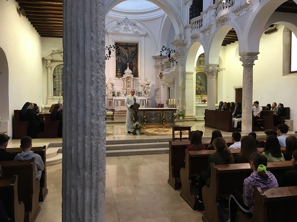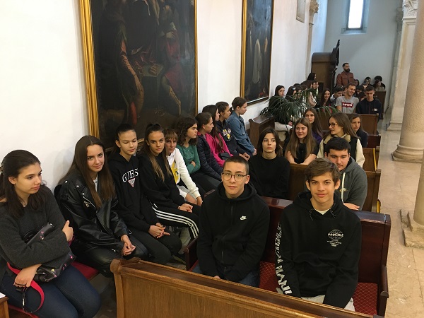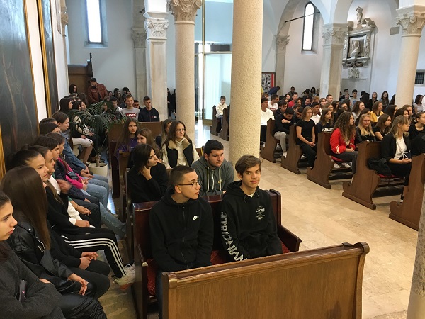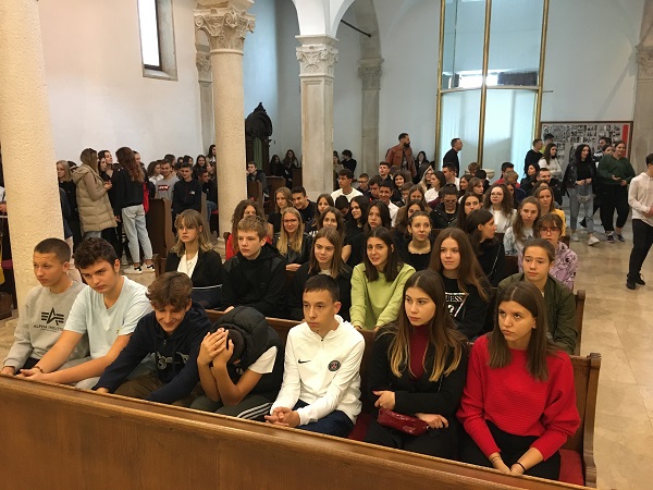 Ako prilikom ulaska u Klasičnu, pred vratima skrenete pogled ulijevo, primijetit ćete jedan poseban kameni blok. Njega je, naime, upravo papa Ivan Pavao II. posvetio prilikom posjeta Zadru 2003. godine. Postavljen je tako kao kamen temeljac školi te ujedno simbolizira temeljne kršćanske vrijednosti koje se trudimo živjeti kako u školi tako i izvan nje. Naš svečan dan proslavili smo u duhu zajedništva i bliskosti profesora i učenika. Poseban trenutak kojim smo započeli taj divan dan bilo je euharistijsko klanjanje pred Presvetim Oltarskim Sakramentom u crkvi sv. Marije koje je predvodio školski duhovnik don Ivan Šibalić. U