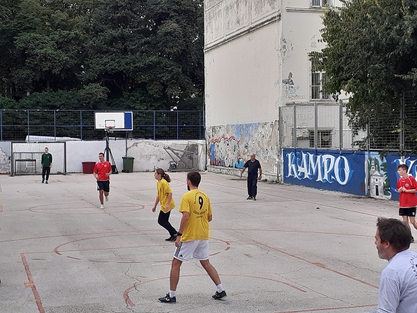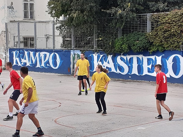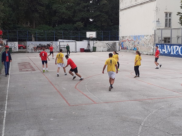 Na kraju je uslijedio najuzbudljiviji dio koji smo mi učenici s nestrpljenjem čekali, a to su bila sportska natjecanja kojim smo okončali slavlje Dana škole. Djevojke i jedan dečko igrali su odbojku, a utakmica je završila sa rezultatom 2:0. Najviše smo iščekivali nogometni dvoboj između profesora i učenika. Kako smo saznali, redovito su sve do posljednje utakmice, koja je odigrana prije korone, pobjedu odnosili profesori, no sada favorita, čini se, nije bilo! Utakmica je, moram priznati, bila napeta do samoga kraja te smo ju svi u neizvjesnosti pratili. Energija i potpora navijača bila je više nego izvrsna, prof. Ratko Rušev iskazao se svojim bravuroznim obranama, a djeca našega profesora Damira Sikirića svojim su iskrenim poklicima i veselog duha bodrili svoga tatu, no pobjedu je ipak odnio učenički tim s rezultatom 3:2.