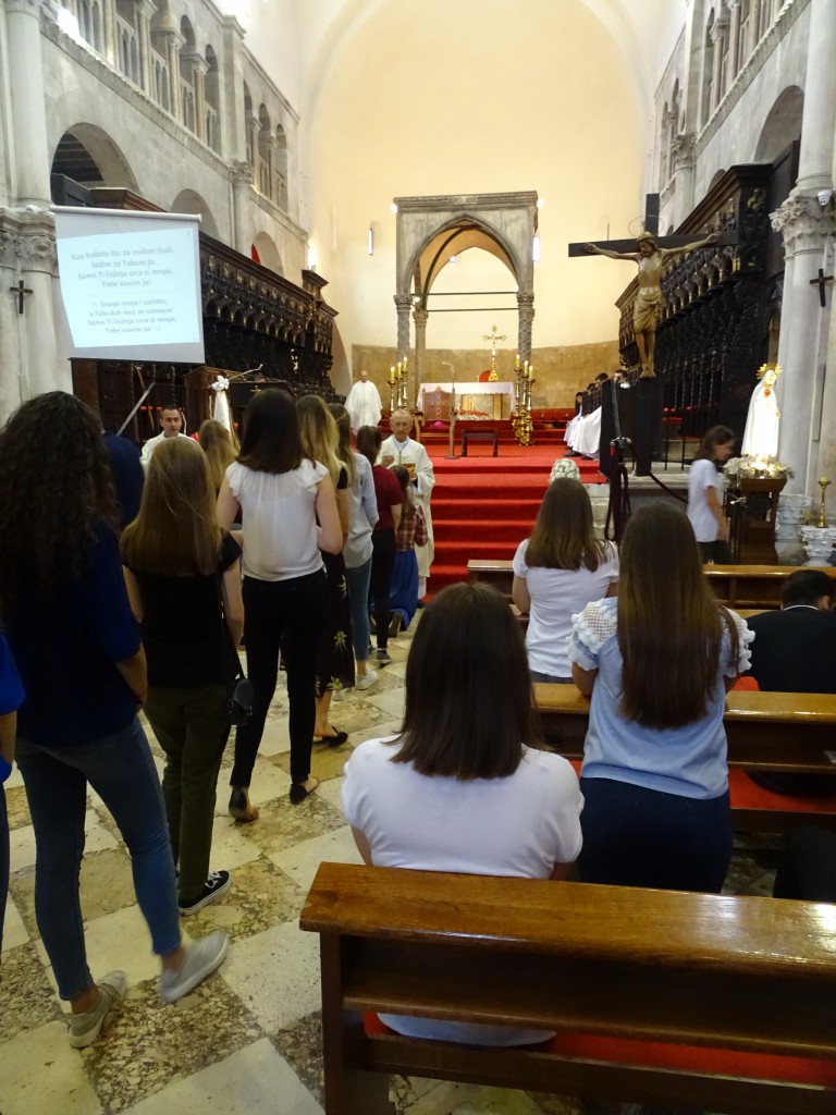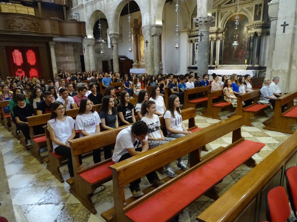 Posljednjeg dana nastave, u srijedu, 14. 6. 2017. godine, okupili smo se u našim učionicama i zajedno s profesorima uputili prema katedrali svete Stošije. Svetom misom koju je predvodio zadarski nadbiskup mons. Želimir Puljić u suslavlju s ravnateljem naše gimnazije don Antom Sorićem zahvalili smo Bogu na snazi i potpori u našem napornom radu tijekom protekle godine i u svečanom tonu dočekali njezin kraj.