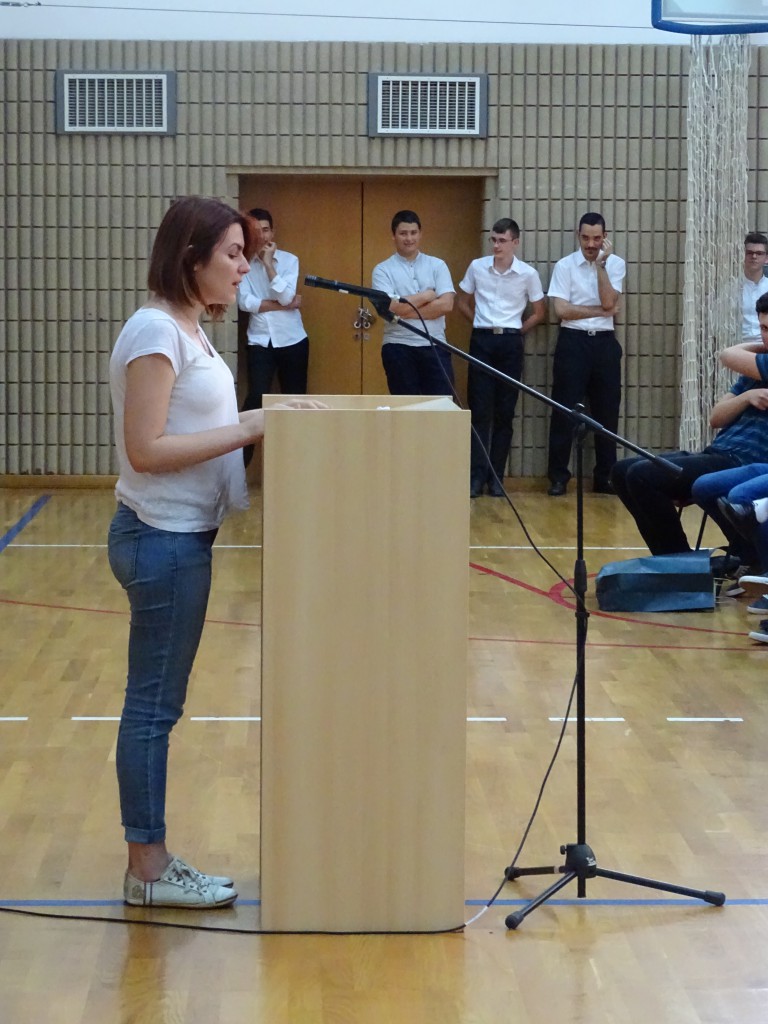 Gospođa Svjetlana Laszowski obratila se djelatnicima i profesorima u ime roditelja zahvalivši im na trudu, entuzijazmu i strpljenju koje su uložili u njihovu djecu. U ime maturanata obratila se učenica Lucija Veršić. Svojim je dirljivim govorom izazvala smijeh i suze prisutnih. Svakog je profesora s ljubavlju predstavila i navela sve dobro što su od njih naučili, ne samo podatke iz udžbenika, već one za život važne lekcije koje u njima ne možemo pronaći. Ono što je najvažnije, dobili su ljubav s kojom će nastaviti svoj životni put. Možda su sada preumorni za uviđanje sveg dobrog koje im je Klasična usadila, ali sigurno će u jednom trenutku života biti istinski zahvalni na njima. Sada su punoljetne osobe spremne raditi na ostvarivanju svojih želja i iskorištavanju svih potencijala, istaknula je u svom govoru Lucija Veršić.