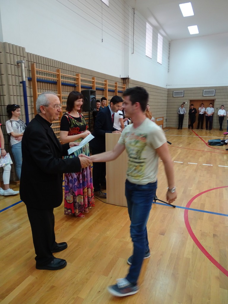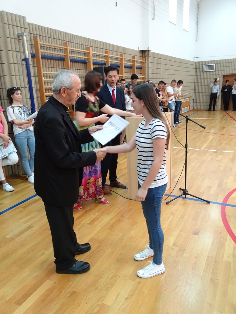 Slijedila je podjela svjedodžba maturantima i pohvalnica odličnim učenicima. Predvodili su je razrednici i nadbiskup mons. Želimir Puljić. Zaslužili su svaku pohvalu za četiri uspješno završene godine u koje je uložen veliki trud i napor.