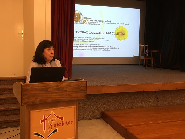 Svečanost je to prije svega hrvatske riječi i hrvatskog jezika čiji se dani upravo sada obilježavaju: od 11. do 17. ožujka. Baš je u nju uklopljeno i spomenuto stručno vijeće s predavanjima kao i recital te likovna izložba. Odali smo na ovaj način počast A. G. Matošu, pjesniku, novelistu, feljtonistu, esejistu i putopiscu za sve što je učinio za hrvatsku riječ i književnost. U prvom dijelu programa dr.sc. Sanja Knežević, pročelnica Odjela za kroatistiku na Sveučilištu u Zadru, održala je predavanje Matoševi domovinski putopisi, a u drugom dijelu uslijedilo je proglašenje najboljih literarnih radova pristiglih na literarni natječaj U potrazi za izgubljenim cvijetom. U dvije kategorije: osnovne (7. – 8. razred) i srednje škole (1. – 4. razred) prva tri rada nagrađena su vrijednim knjigama.