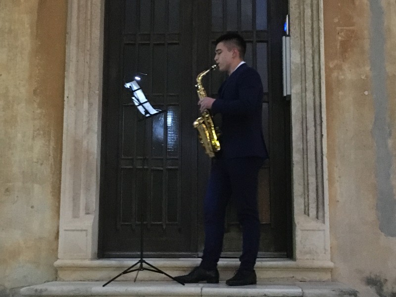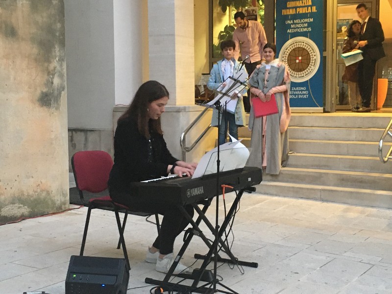 Uslijedio je mali glazbeni predah, slušali smo skladbu Etude Moritiza Moszkowskog u izvođenju Veronike Višnjić koja ju je gotovo savršeno odsvirala na klavijaturama i zaslužila gromki pljesak okupljenih. Nakon Veronike razveselili su nas svojim spontanim nastupom učenici Katoličke osnovne škole Ivo Mašina koji su recitirali dijelove iz slikovnice Judita. Evo još jednog iznenađenje s već spomenutog prozora, sada je učenica Ema Skorče krasnoslovila Marulićevu molitvu Divici Mariji – izražajno, u jednom dahu s predivnim glasom. Zaslužan za drugi glazbeni predah bio je učenik Jeronim Peša koji je na saksofonu virtuozno izveo skladbu Spiritual et danse exotique autora Jeana Avignona. Pri kraju svečanosti zbor je ponovno izašao kako bi otpjevao čuvenu skladbu Neka cijeli ovaj svijet iz mjuzikla Jalta, Jalta.