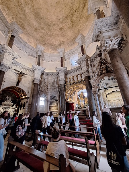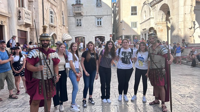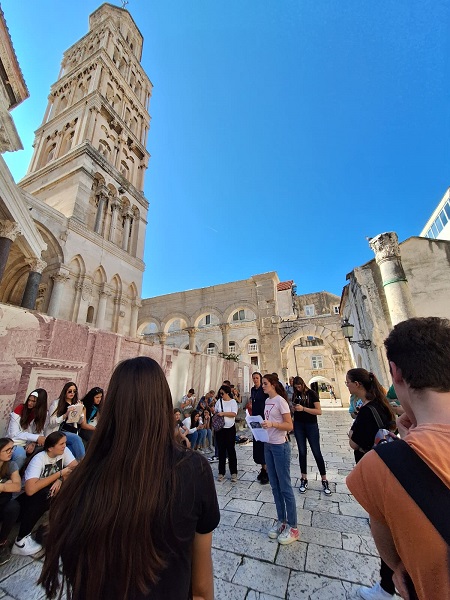 Nakon šetnje i razgledavanja Salone te Tusculuma zaputili smo se prema Splitu. U Splitu smo najprije razgledali Arheološki muzej gdje smo vidjeli materijalni odraz prošlosti llira. U dvorištu i muzeju mogli smo vidjeti kamene spomenike iz rimskoga, grčkog i srednjovjekovnog razdoblja. Bilo nam je zadivljujuće gledati ovaj muzej, pogotovo brončanu Artemidinu glavu i pretpovijesnu građu. Nakon muzeja šetnjom smo se uputili prema katedrali sv. Duje (Dujma) koja je smještena u kompleksu Dioklecijanove palače u Splitu i prvotno je bila carski mauzolej. Pred katedralom smo također poslušali nekoliko referata naših učenika koji su bili vezani uz sv. Duju (Dujma) i Dioklecijanovu palaču. Nakon cjelokupnoga razgledavanja došlo je na red slobodno vrijeme koje smo svi iščekivali jer smo bili dosta umorni. Slobodno vrijeme iskoristili smo zabavno i kvalitetno. Naravno, svima nam je bilo lijepo vidjeti ljepote Splita.