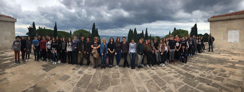 Za kraj ovog prelijepog iskustva učenica 1.a razreda Antea fotografirala je naša dva razreda, razrednike i profesoricu na prostranoj terasi Meštrovićeve vile te zaustavila jedan divan trenutak u vremenu.