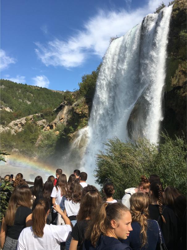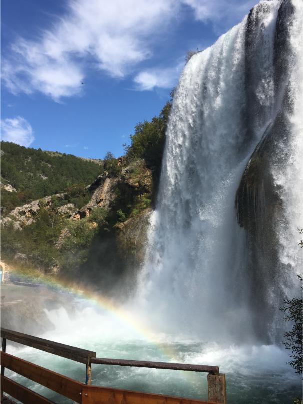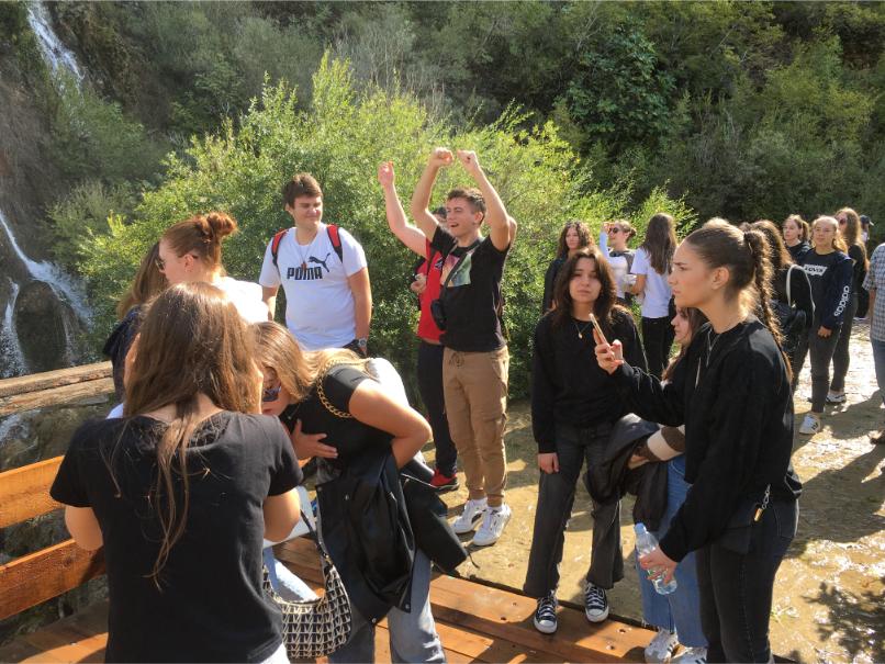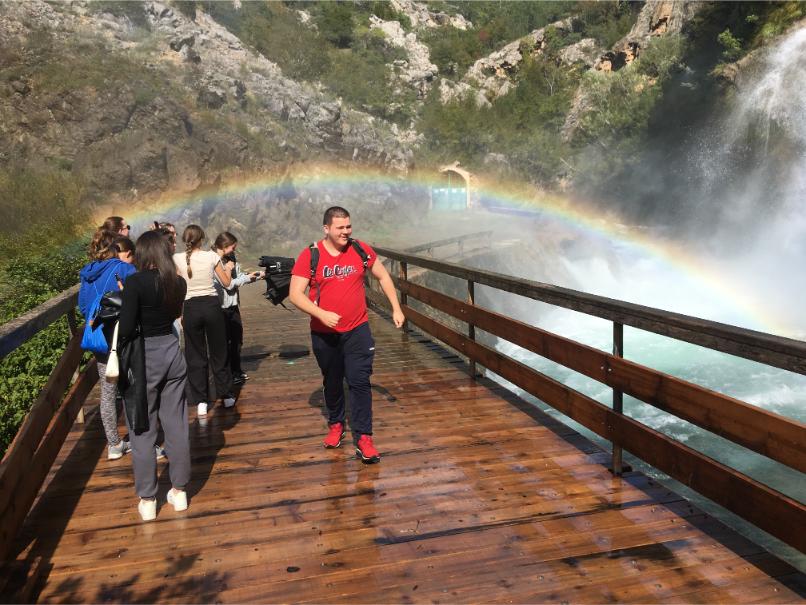 Iza Klare, na red su došle učenice iz 3.c razreda: Mare Mijolović i Anđela Vukoja, koje su od profesorice Željke dobile zanimljiv zadatak – napraviti kemijsku analizu rijeke Krke. Naravno, uz napomenu da budu oprezne kako ne bi slučajno završile u vodi! Srećom, sve je prošlo baš onako kako je i planirano. U svom izlaganju predstavile su nam projekt i pružile detaljan uvid u samu rijeku Krku, kao i u Nacionalni park Krka, prenoseći zanimljive činjenice o prirodnim bogatstvima tog područja. Oko 11:30 stigli smo u Knin i posjetili Krčić – čudesan izvor rijeke Krke! Dočekala nas je prekrasna duga iznad slapa, savršena pozadina za par fotografija – onih razrednih i onih ludih! Neki su se čak hrabro uputili »ispod duge«, dok su ostali završili samo s mokrim nogama, ali s osmijehom na licu!