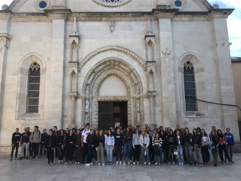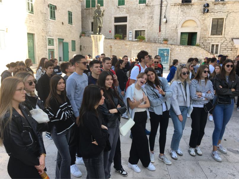 Listopad nam je i ove godine donio nezaboravnu terensku nastavu koja nas je ostavila bez riječi i fascinirala svojim ljepotama i nezaboravnim iskustvima koja će nam dugo ostati u sjećanju. U petak, 11. listopada, 3.a, 3.b i 3.c okupio se na Autobusnom kolodvoru oko 7:45, s nestrpljenjem iščekujući polazak koji je bio planiran u 8:00, ni minutu kasnije! U pratnji svojih razrednika: prof. Mie Glamuzine, prof. Anđela Duškovića i prof. Damira Sikirića zaputili smo se prema Šibeniku, Kninu i povijesnom Burnumu!