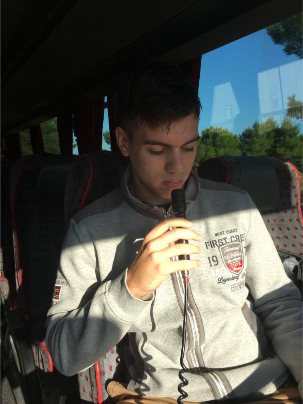 Nakon Stribora, na red je došla Ana Kostović, učenica 3.a razreda, koja je s geografije prešla na povijest i upoznala nas s bogatom poviješću grada Šibenika. Njezino izlaganje osvijetlilo je kulturno naslijeđe i stratešku važnost grada tijekom stoljeća. Također, zanimljivo je kako je Šibenik bio pod vlašću različitih republika i kraljeva, što je na kraju krajeva i oblikovalo njegov jedinstveni identitet. Nadalje, mikrofon su preuzele Anamarija Šimunić iz 3.c i Paula Erceg iz 3.a koje su u paru izložile zanimljive informacije o šibenskim humanistima i važnosti humanizma u Šibeniku. Osvrnule su se na najistaknutije šibenske humaniste, poput Jurja Šižgorića, Antuna i Fausta Vrančića te su objasnile njihov značaj za hrvatsku kulturu i šire. Njih dvije zatvorile su prvi krug izlaganja referata, a dok smo se približavali Šibeniku, naša DJ ekipa, predvođena Stipanom, Brigitom i Alojzijem zabavljala nas je raznim stranim i domaćim hitovima, čime su oživjeli cijeli autobus. Taman za dobro jutro!