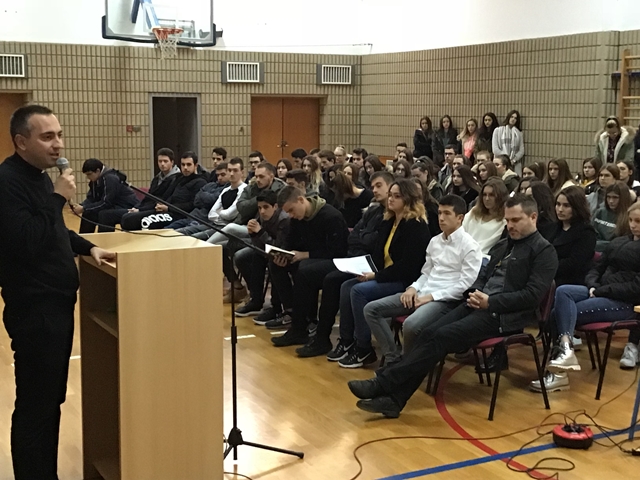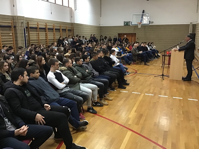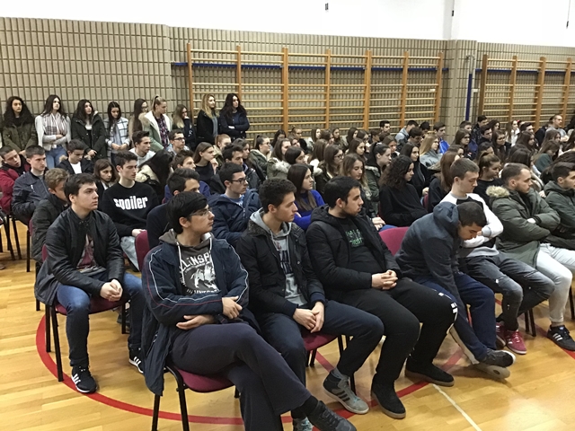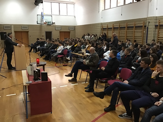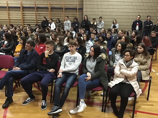 Tjedan sjećanja na stradanje Vukovara i Škabrnje obilježili smo u Klasičnoj gimnaziji Ivana Pavla II. predavanjem branitelja i književnika Ivice Giovannija Matešića – Jeremije. Svoje je zapise s bojišnice g. Matešić prvo pretočio u kolumne Zadarskog lista, no ubrzo izlaze i knjige: Križ moje braće, Uskrs duše gardijske, S nama su!, Mir tebi gardo: evanđelje moje, Takvo zar bilo je lice tvoje i druge. Memoarska je to proza bliska ratnim dnevnicima, ali također prati i tužne sudbine naših branitelja u poraću. Baš smo iz jedne od njih imali priliku čuti potresno svjedočanstvo o ulasku Srba u Škabrnju koje su dojmljivo pročitali profesor Ratko Rušev i učenik Luka Martić. Takav uvod ostavio nas je sve bez riječi, dvoranom je vladao težak muk, usuđujem se reći gotovo pogrebna atmosfera.