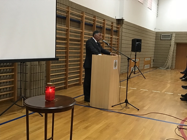 Za govornicu je zatim izišao g. Giovanni Matešić – Jeremija i prekinuo tišinu. Govor je održao u kratkih pola sata, te na nevjerojatan način prenio svoju ratna iskustva na nas – mlade slušatelje koji tada nismo ni bili rođeni. Govorio je o svojim sjećanjima na rat, o početku rata, o vjeri i o svojim suborcima, od kojih neki, nažalost, više nisu među nama. Uspio nam je vjerno prenijeti ne samo neke objektivne okolnosti toga vremena nego još više svoje osjećaje, stanje svog uma i svoje duše u ratnom vihoru. Zahvaljujući svojem ratnom iskustvu, ali i književnom daru izvukao je nekoliko slika koje su ostavile na nas jak dojam poput priče o suborcima od kojih je, primjerice, jednog njegovog prijatelja metak pogodio u torzo, te je dolaskom u bolnicu imao dvadeset i pet stupnjeva tjelesne temperature. Liječnik je rekao da ga je baš to smrzavanje spasilo i taj čovjek još uvijek živi. Ispričao nam je i priču o drugome suborcu koji je, pogođen na ratištu, jedva došao u zadarsku bolnicu pa usred granatiranja premješten u Biograd, gdje su mu dali krivu krvnu grupu i sve je to preživio. Htio je naglasiti koliko su branitelji podnijeli žrtava za slobodnu Hrvatsku, borili su se sa srcem i snažnom voljom što je očito nadilazilo sve tjelesne mogućnosti pa su u takvim trenucima i čuda moguća.