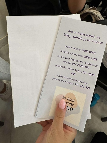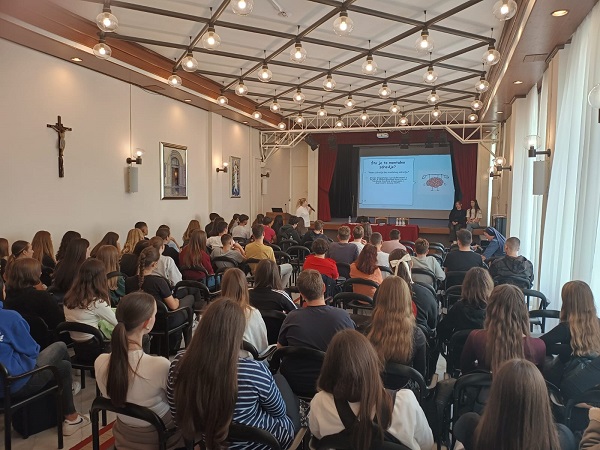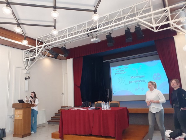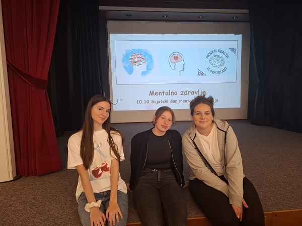 Povodom Svjetskog dana mentalnog zdravlja, 10. listopada, psihologinja Željka Rodić i učenice 2. c razreda, Anamarija Mustać, Elena Pavlović i Marta Utković, provele su zanimljivo predavanje o mentalnom zdravlju. Predavanje je bilo namijenjeno našim učenicima prvih razreda i njihovim razrednicima a cilj je bio podići svijest o brizi i problemima mentalnog zdravlja koji su aktualni među mladima.