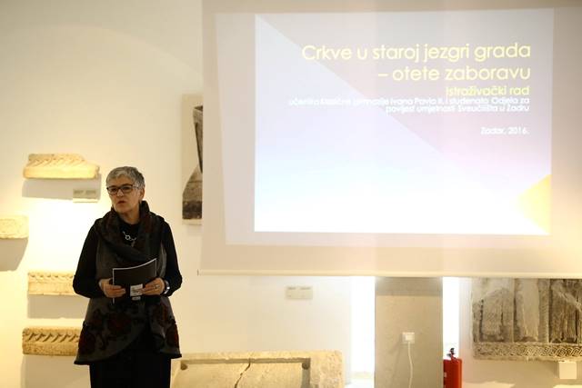 Sudbine crkvi nalikuju sudbinama ljudi, različite su, rađaju se, dulje ili kraće traju pa dotraju ili stradaju… zamete im se trag. Prolaznost vremena, kratkoća pamćenja, ratni vihori i sl. izbrisali su neke crkve u staroj jezgri grada Zadra, na području Poluotoka. Tragova o njima je malo (spomen na neke od njih čuva se u rijetkim knjigama koje je odavno prekrila prašina). No, nestale crkve su spomena vrijedni spomenici zadarskoga sakralnog graditeljstva, dio su zadarske povijesti i zaslužuju naše bolje poznavanje i poštivanje kako bismo bili baštinici svega što su nam prethodne generacije ostavile u nasljeđu i prenositelji tog istog naraštajima poslije nas – rekla je predstavljajući ovaj projekt prof. Elvira Katić. Osim nje u projektu su kao nositelji aktivnosti iz naše škole sudjelovali i prof. Neven Nižić te s. Viktorija Gadža. Od učenika to su bili: Nikolina Bajlo, Lucija Grubić, Magdalena Ivić, Karla Klanac, Julia Kršlović Babić, Katarina Matulić, Lucija Veršić i Šime Teklić. Osim Kataloga i Izložbe rezultati istraživanja su i obrazovna postignuća učenika i studenata: