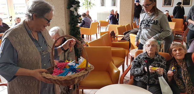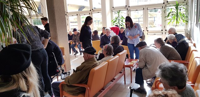 Iz tih razloga, sa željom da se tome barem na trenutak odupremo, odlučili smo u petak 21.prosinca, zajedno sa s. Viktorijom, posjetiti Dom za starije i nemoćne na Sfingi i svojim boravkom među njima na određeni način oživjeti duh Božića. Naime, kao skupina volontera Volonterskog kluba „Kapljica“ okupili smo se ispred Doma prije 10:00 sati, ušli i sačekali da se sakupe i naši prijatelji, štićenici Doma. Ispred sebe smo mogli vidjeti mnoga lica na kojima su ispisane individualne, posebne priče. Oči su bile uprte u nas, pune iščekivanja i zainteresiranosti. Moja malenkost glasno je pozdravila sve prisutne i predstavila cijelu veselu družinu.